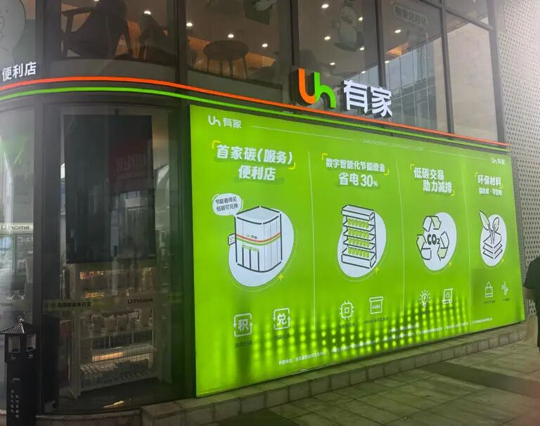 中碳登大厦门外的便利店,市民可以用碳积分在里面购物